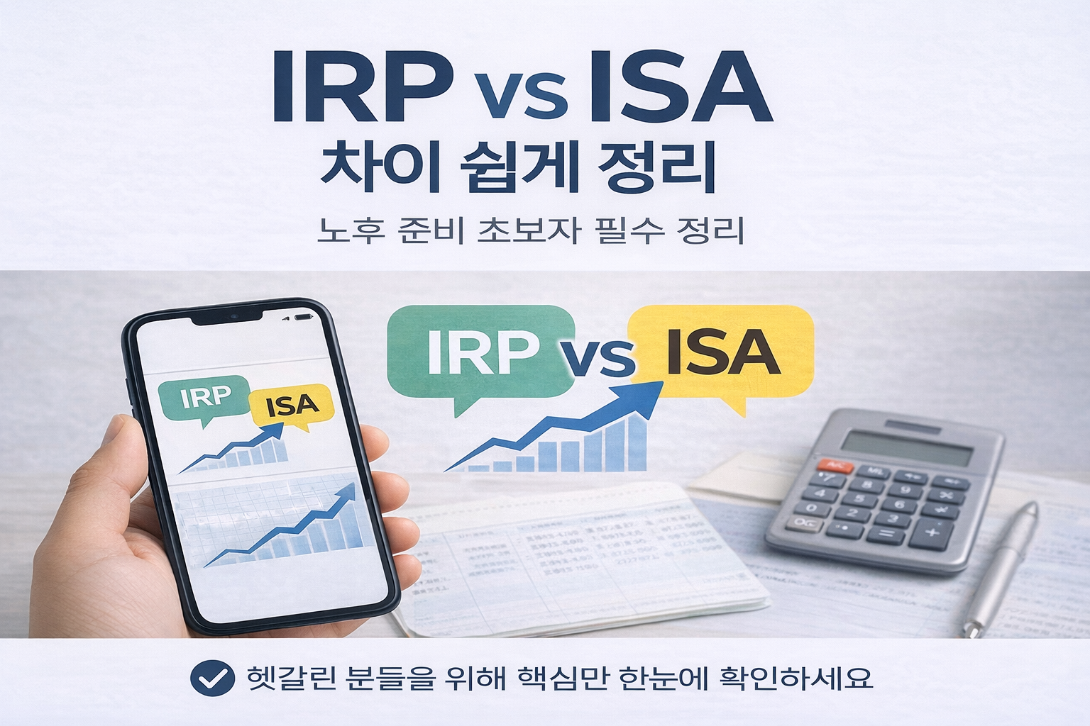메타 설명: IRP와 ISA 차이가 헷갈리는 분들을 위해 목적, 활용법, 어떤 사람에게 먼저 필요한지 쉽게 정리했습니다.